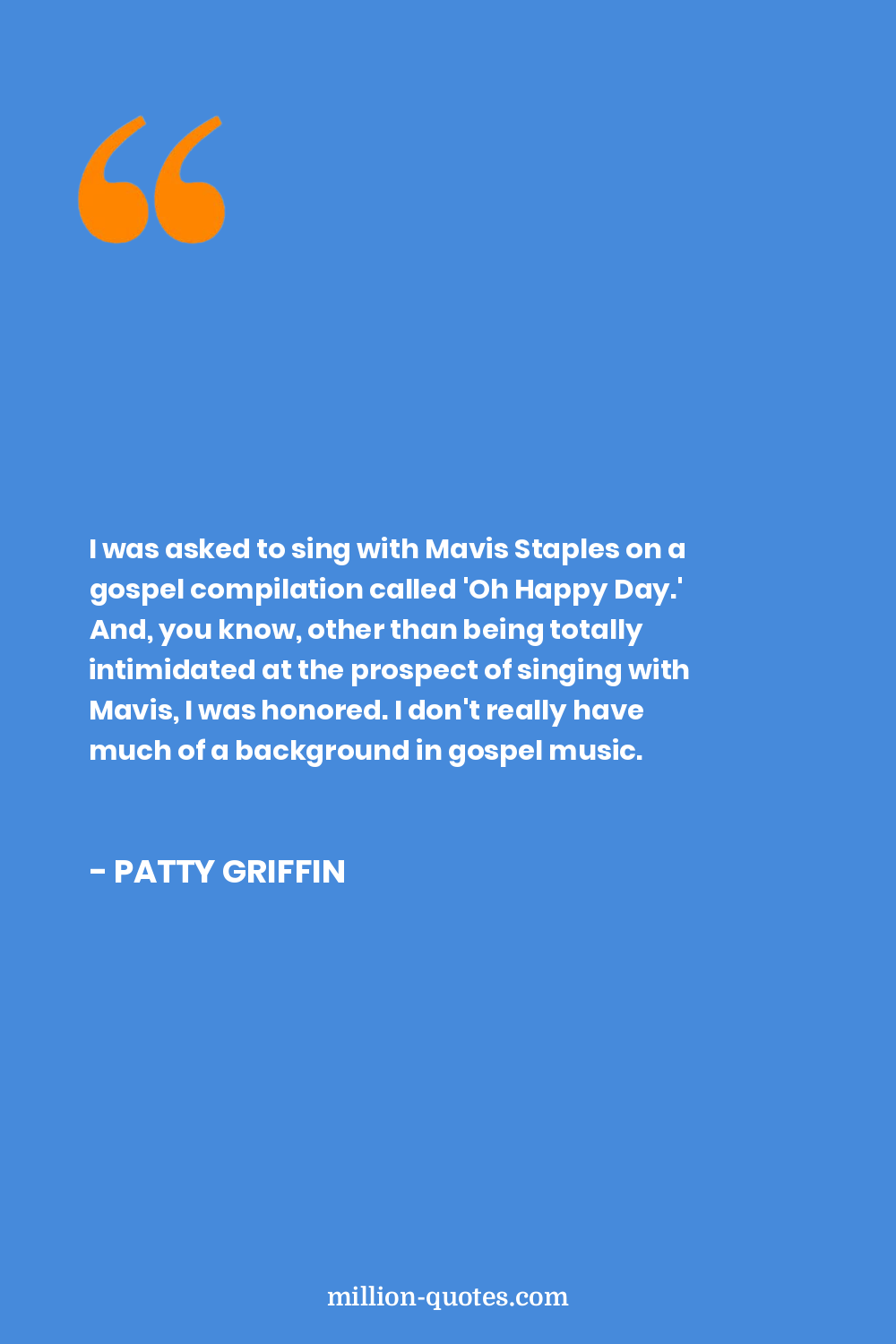I was asked to sing with Mavis Staples on a gospel compilation called 'Oh Happy Day.' And, you know, other than being totally intimidated at the prospect of singing with Mavis, I was honored. I don't really have much of a background in gospel music.