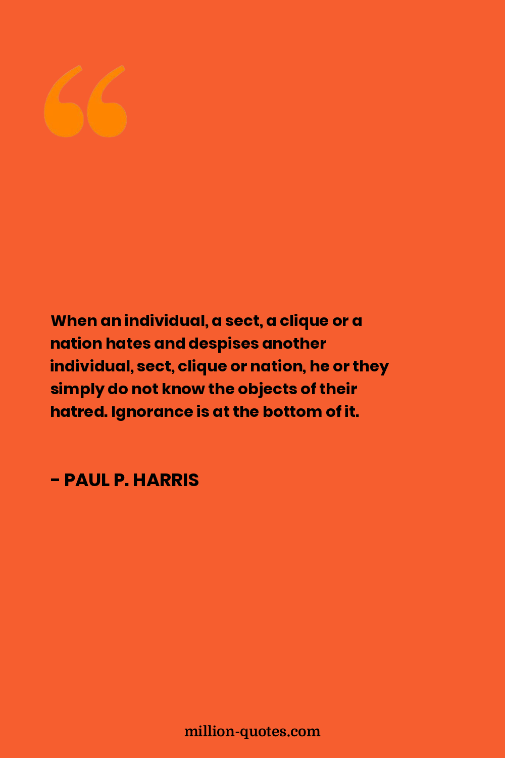 When an individual, a sect, a clique or a nation hates and despises another individual, sect, clique or nation, he or they simply do not know the objects of their hatred. Ignorance is at the bottom of it.