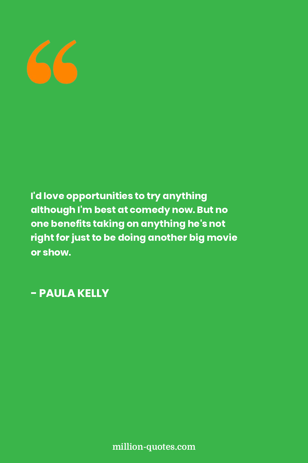 I'd love opportunities to try anything although I'm best at comedy now. But no one benefits taking on anything he's not right for just to be doing another big movie or show.