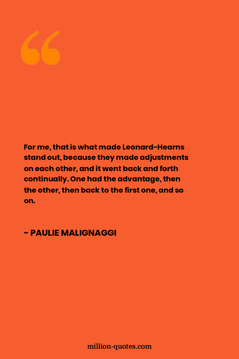 For me, that is what made Leonard-Hearns stand out, because they made adjustments on each other, and it went back and forth continually. One had the advantage, then the other, then back to the first one, and so on.