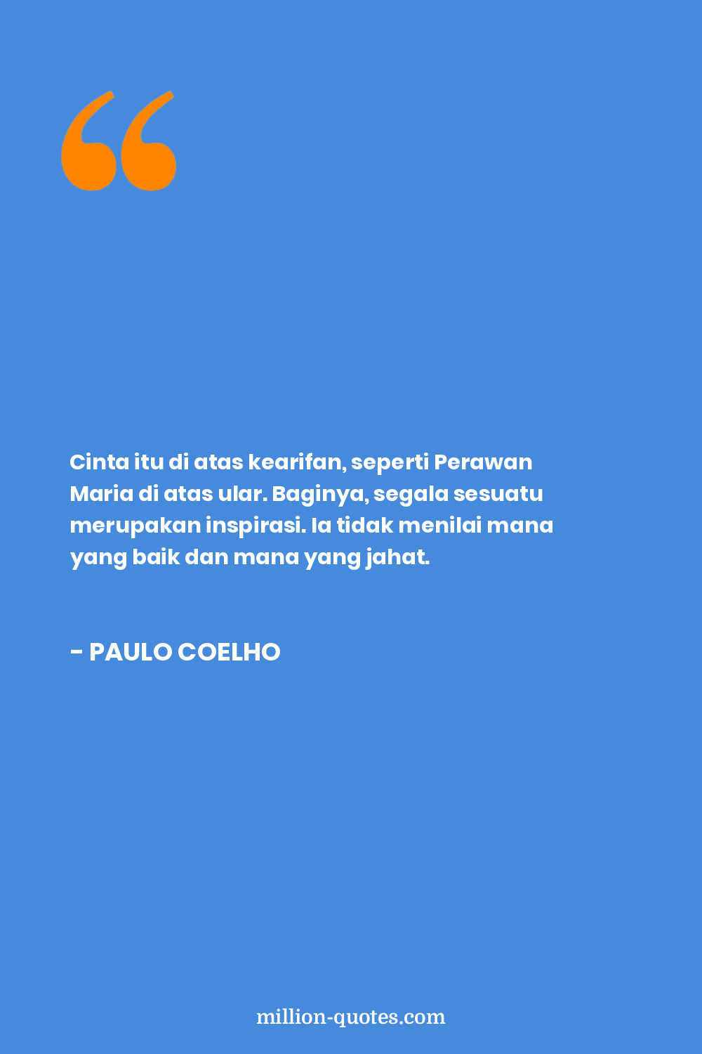 Cinta itu di atas kearifan, seperti Perawan Maria di atas ular. Baginya, segala sesuatu merupakan inspirasi. Ia tidak menilai mana yang baik dan mana yang jahat.