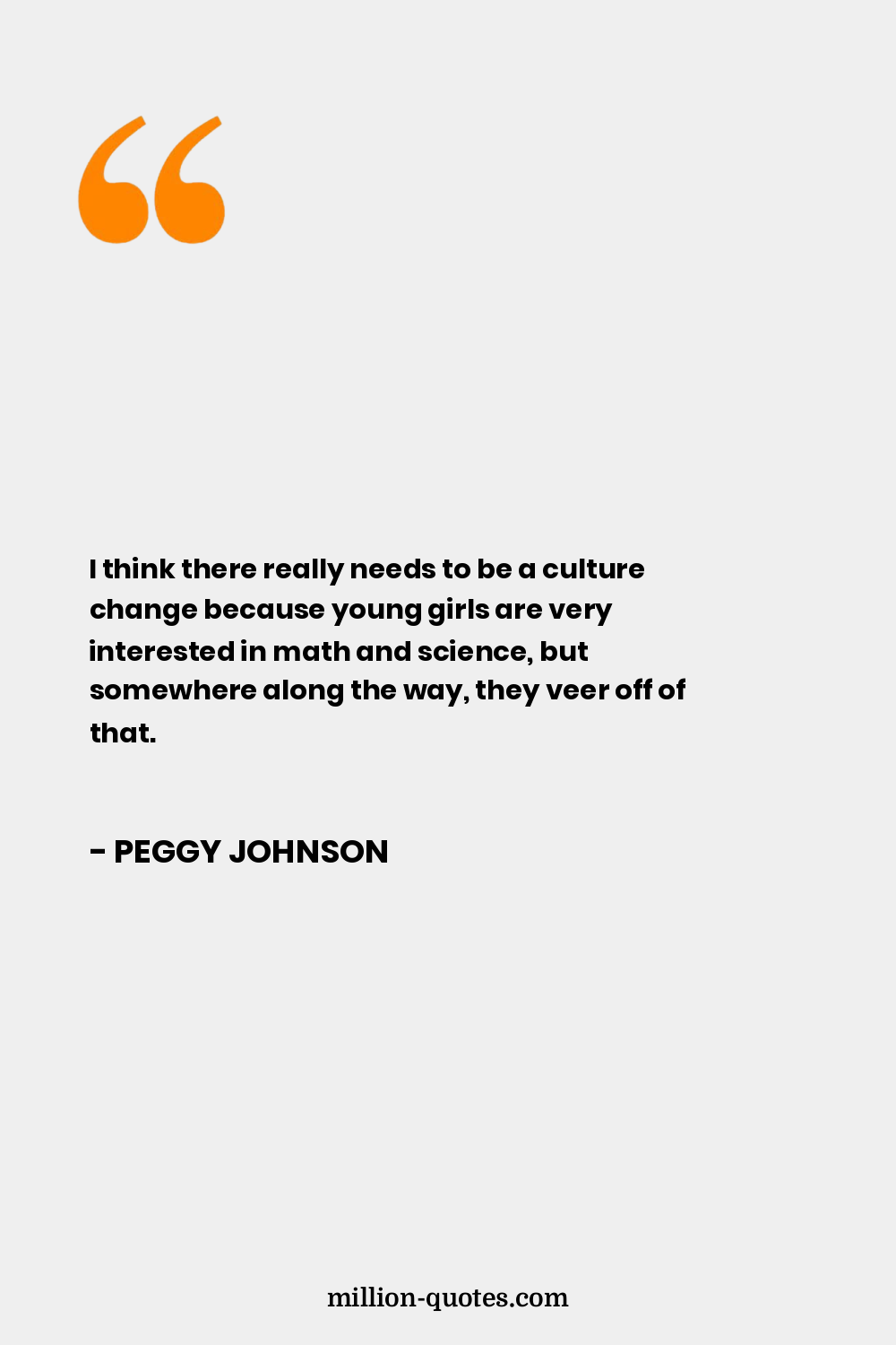 I think there really needs to be a culture change because young girls are very interested in math and science, but somewhere along the way, they veer off of that.