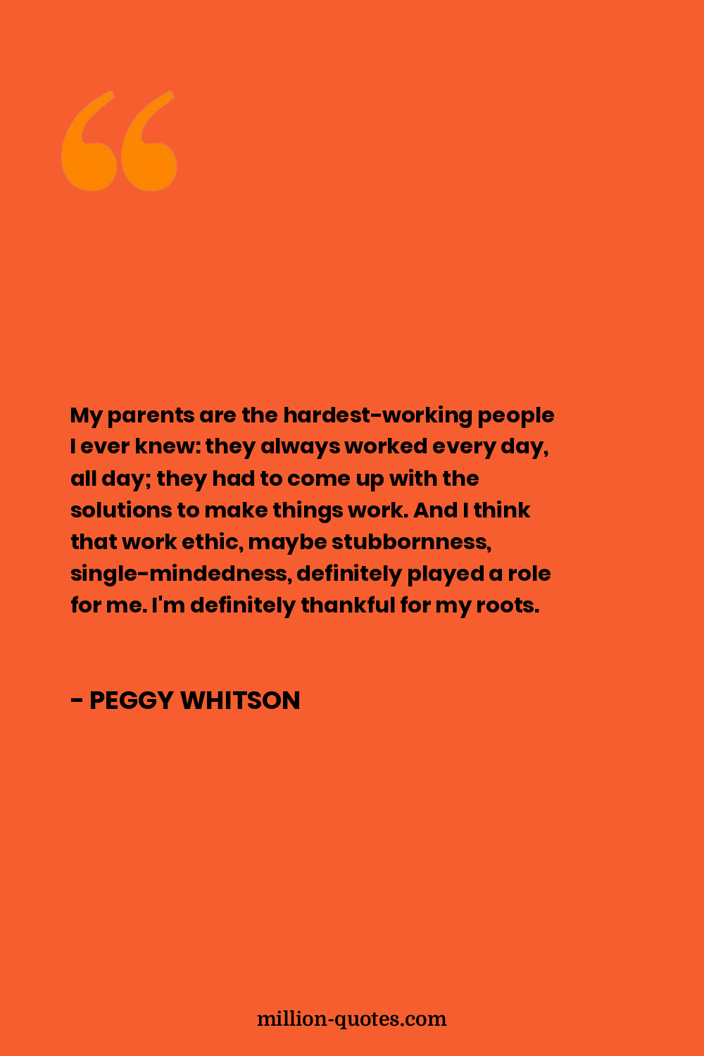My parents are the hardest-working people I ever knew: they always worked every day, all day; they had to come up with the solutions to make things work. And I think that work ethic, maybe stubbornness, single-mindedness, definitely played a role for me. I'm definitely thankful for my roots.
