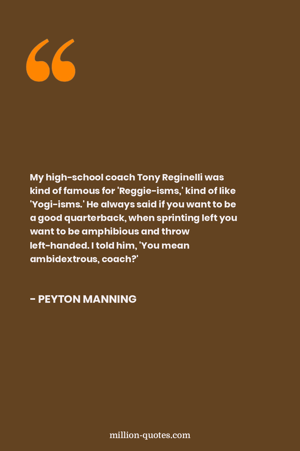 My high-school coach Tony Reginelli was kind of famous for 'Reggie-isms,' kind of like 'Yogi-isms.' He always said if you want to be a good quarterback, when sprinting left you want to be amphibious and throw left-handed. I told him, 'You mean ambidextrous, coach?'