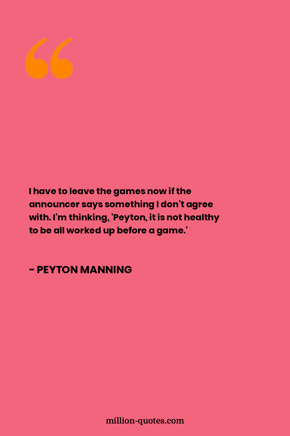 I have to leave the games now if the announcer says something I don't agree with. I'm thinking, 'Peyton, it is not healthy to be all worked up before a game.'