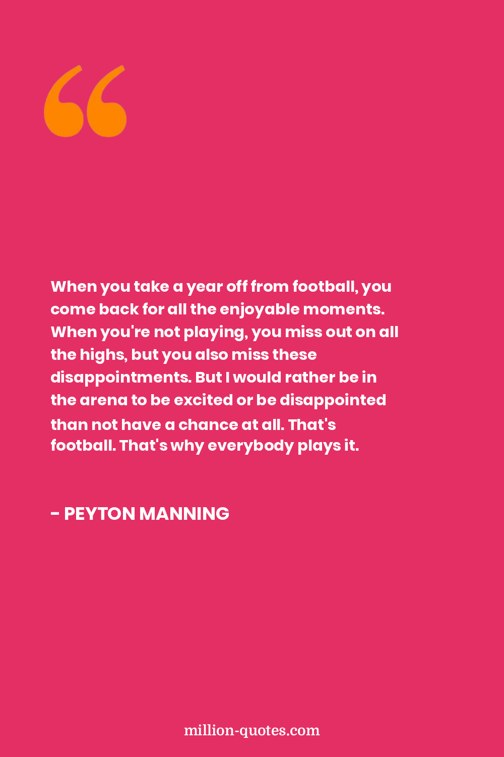 When you take a year off from football, you come back for all the enjoyable moments. When you're not playing, you miss out on all the highs, but you also miss these disappointments. But I would rather be in the arena to be excited or be disappointed than not have a chance at all. That's football. That's why everybody plays it.