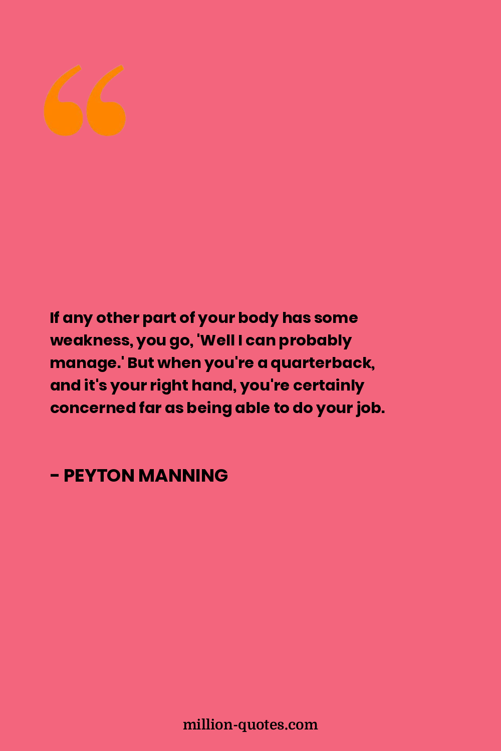 If any other part of your body has some weakness, you go, 'Well I can probably manage.' But when you're a quarterback, and it's your right hand, you're certainly concerned far as being able to do your job.