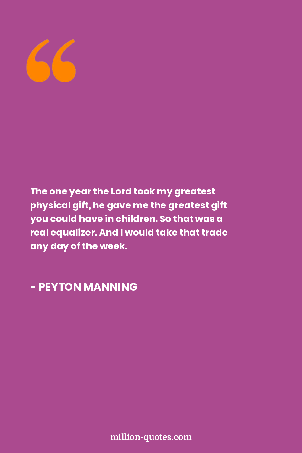 The one year the Lord took my greatest physical gift, he gave me the greatest gift you could have in children. So that was a real equalizer. And I would take that trade any day of the week.