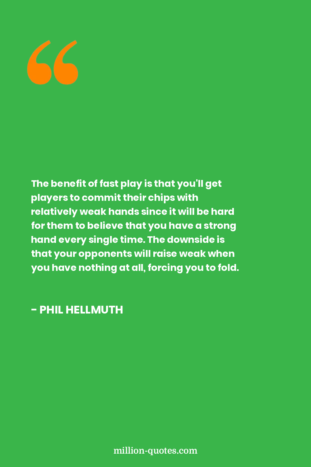 The benefit of fast play is that you'll get players to commit their chips with relatively weak hands since it will be hard for them to believe that you have a strong hand every single time. The downside is that your opponents will raise weak when you have nothing at all, forcing you to fold.