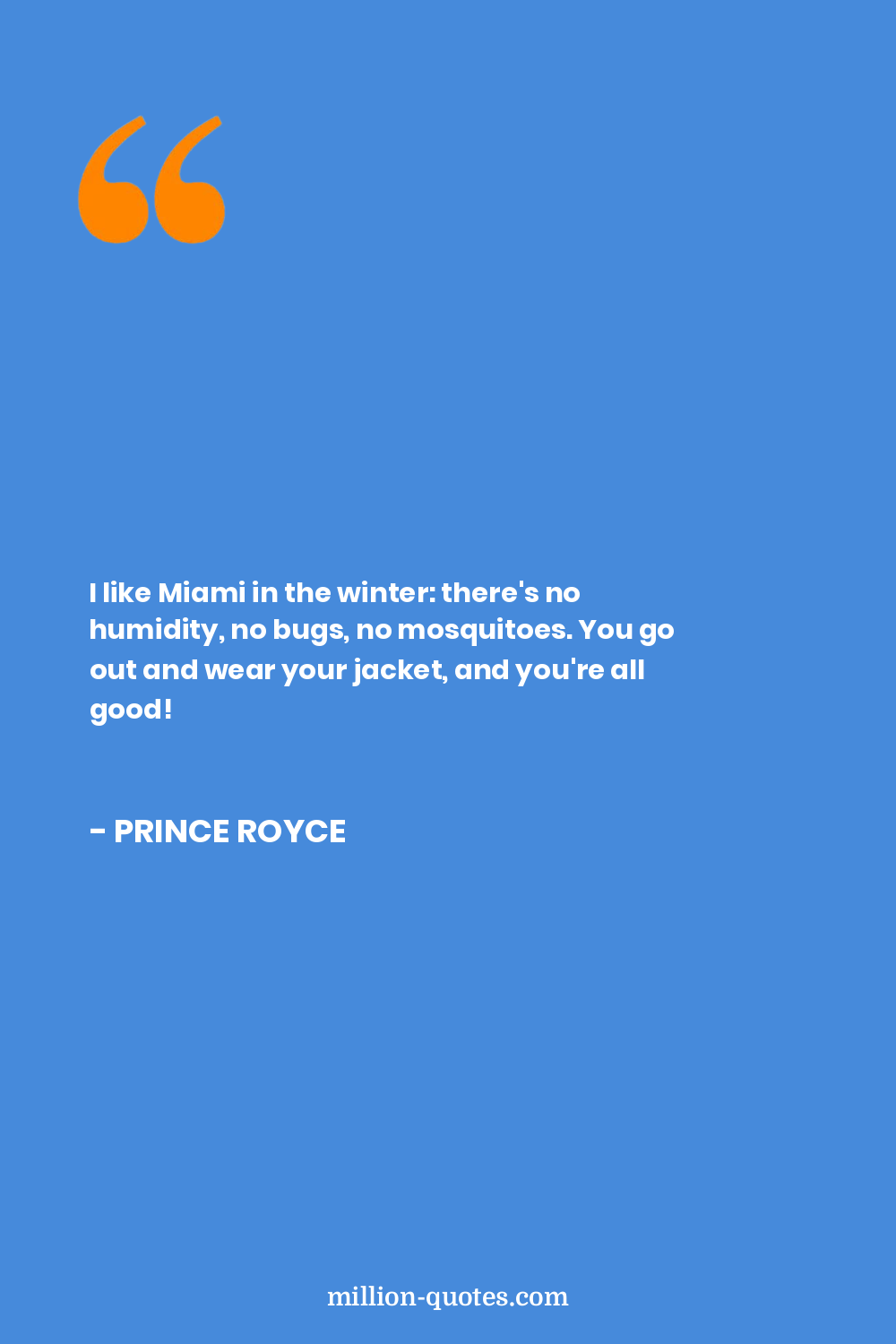 I like Miami in the winter: there's no humidity, no bugs, no mosquitoes. You go out and wear your jacket, and you're all good!