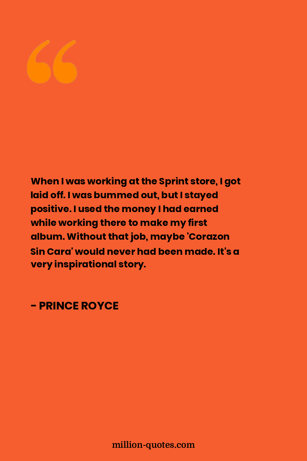 When I was working at the Sprint store, I got laid off. I was bummed out, but I stayed positive. I used the money I had earned while working there to make my first album. Without that job, maybe 'Corazon Sin Cara' would never had been made. It's a very inspirational story.