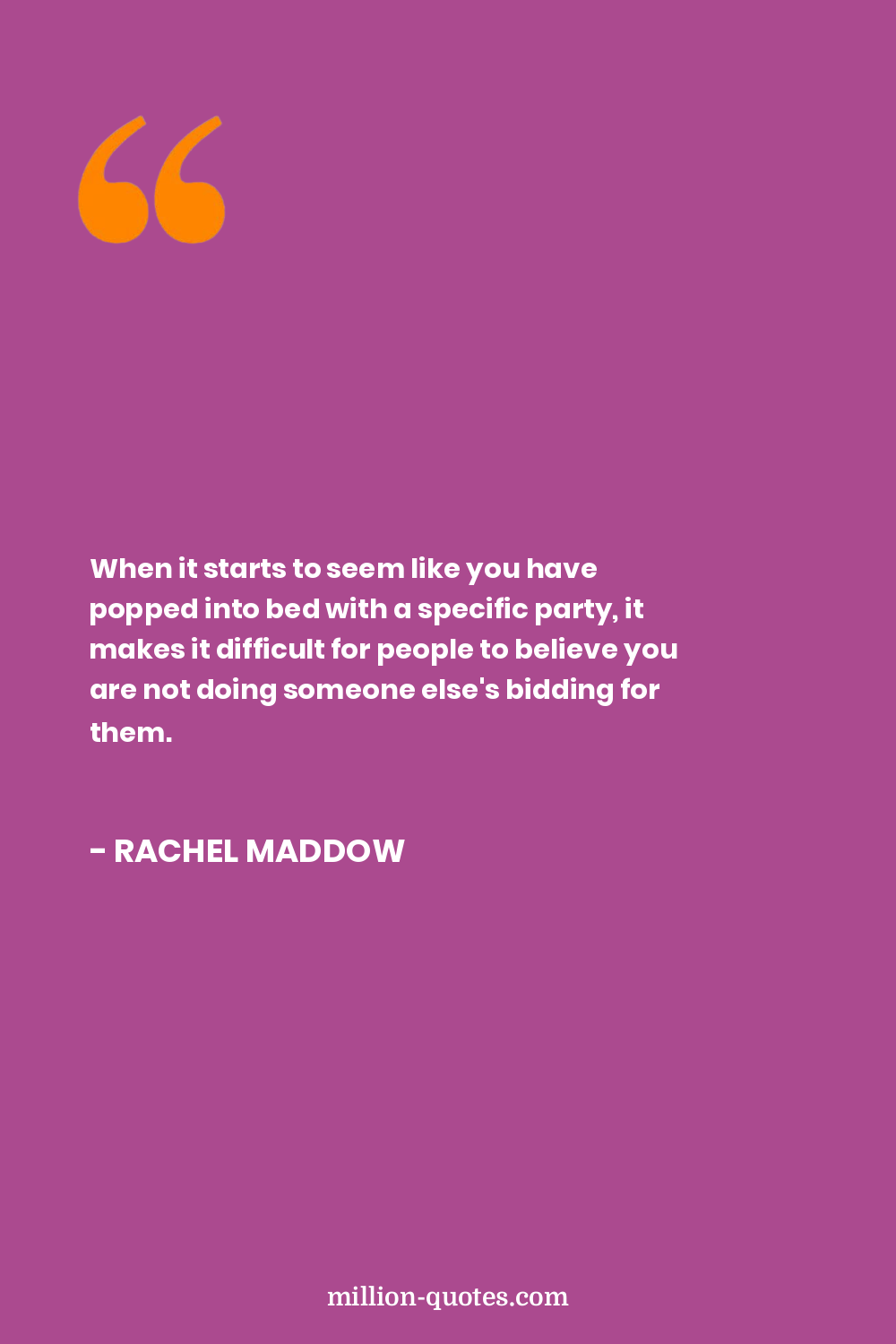 When it starts to seem like you have popped into bed with a specific party, it makes it difficult for people to believe you are not doing someone else's bidding for them.
