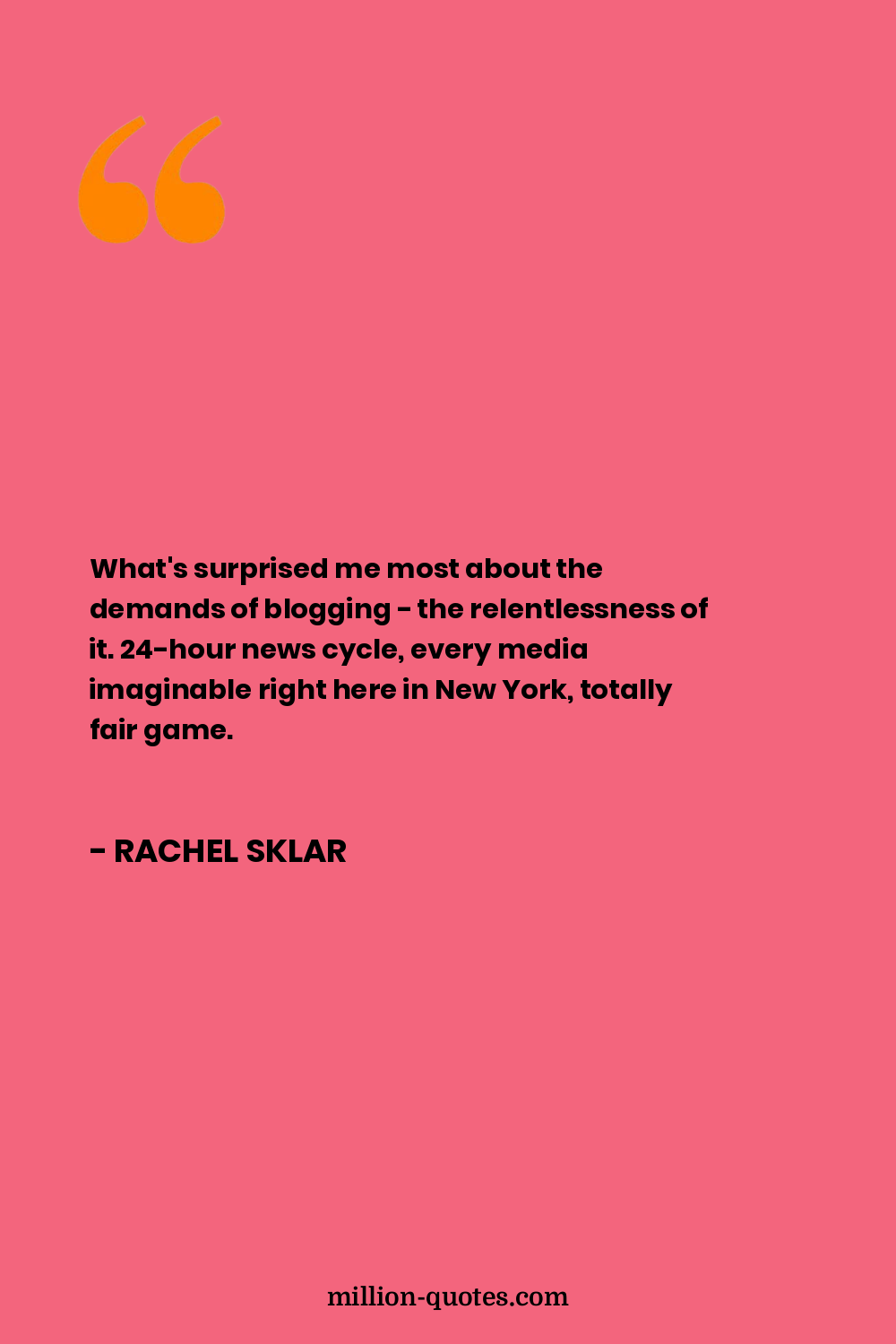 What's surprised me most about the demands of blogging - the relentlessness of it. 24-hour news cycle, every media imaginable right here in New York, totally fair game.
