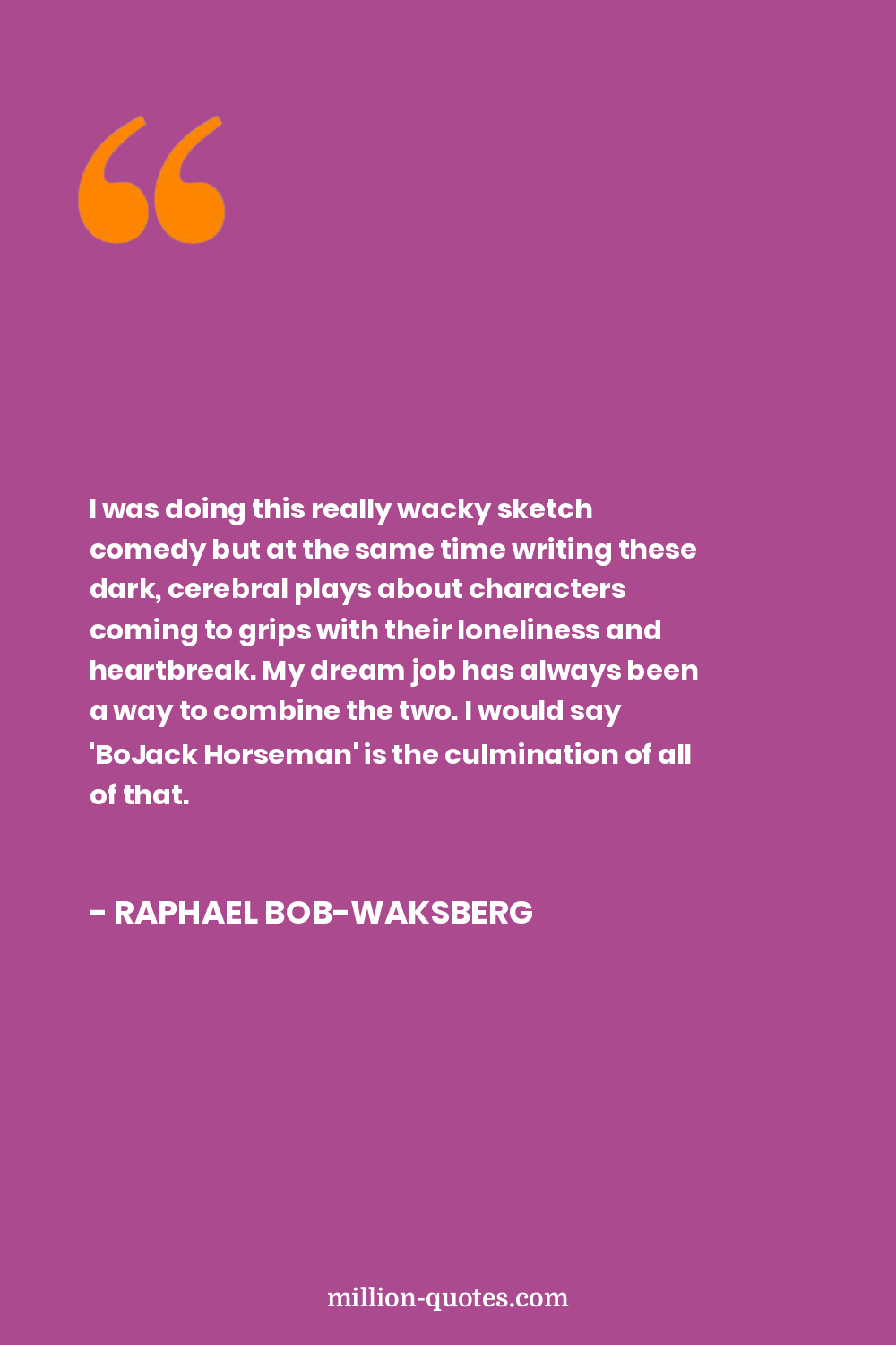 I was doing this really wacky sketch comedy but at the same time writing these dark, cerebral plays about characters coming to grips with their loneliness and heartbreak. My dream job has always been a way to combine the two. I would say 'BoJack Horseman' is the culmination of all of that.
