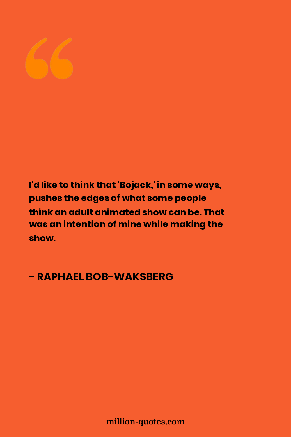 I'd like to think that 'Bojack,' in some ways, pushes the edges of what some people think an adult animated show can be. That was an intention of mine while making the show.