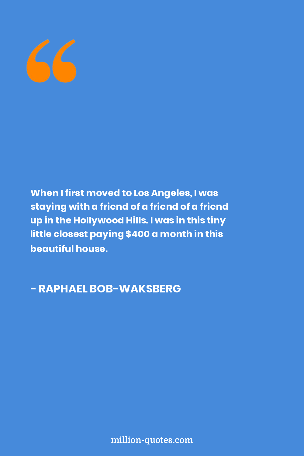 When I first moved to Los Angeles, I was staying with a friend of a friend of a friend up in the Hollywood Hills. I was in this tiny little closest paying $400 a month in this beautiful house.