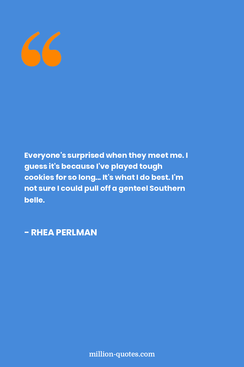 Everyone's surprised when they meet me. I guess it's because I've played tough cookies for so long... It's what I do best. I'm not sure I could pull off a genteel Southern belle.