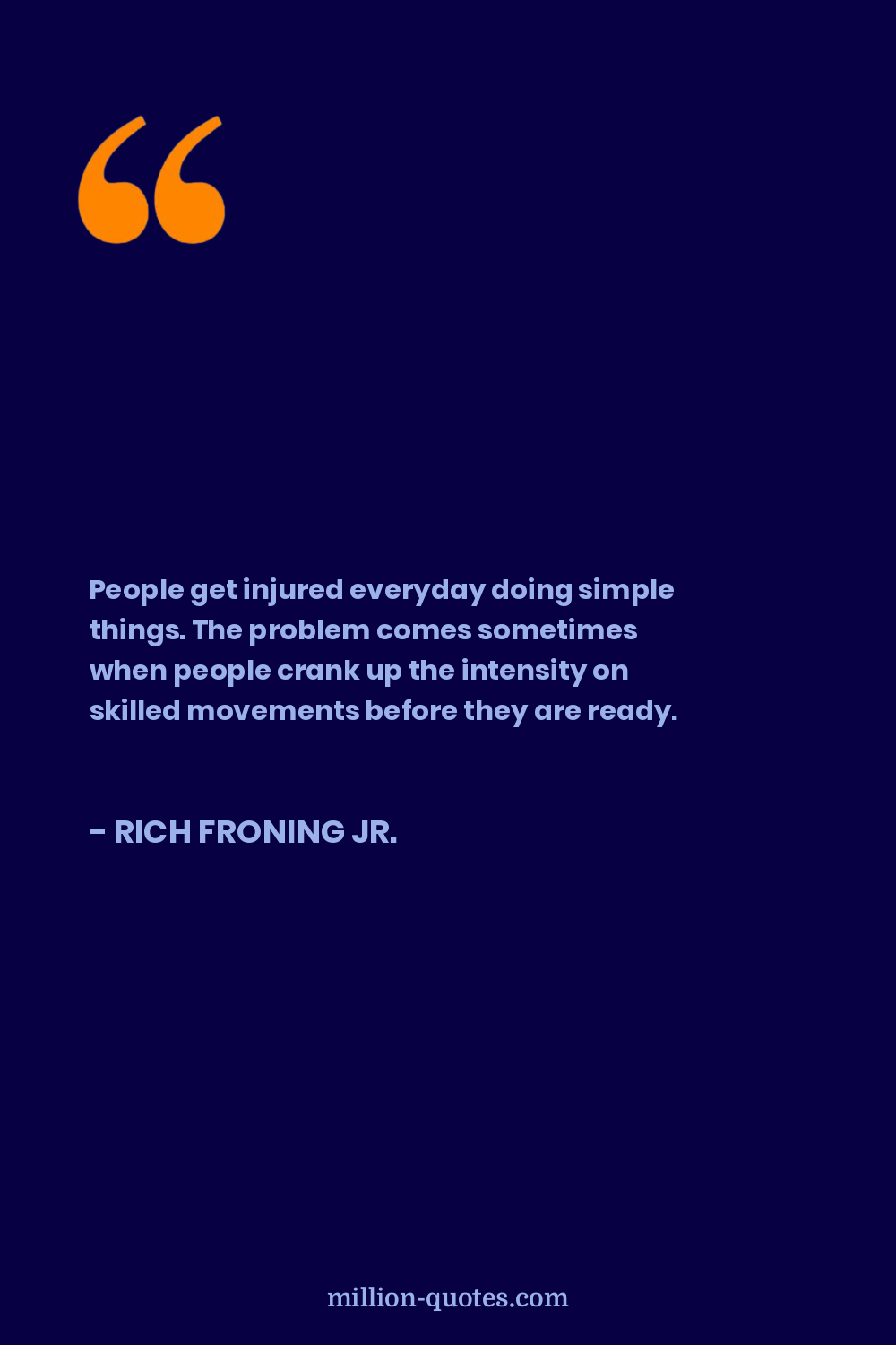 People get injured everyday doing simple things. The problem comes sometimes when people crank up the intensity on skilled movements before they are ready.