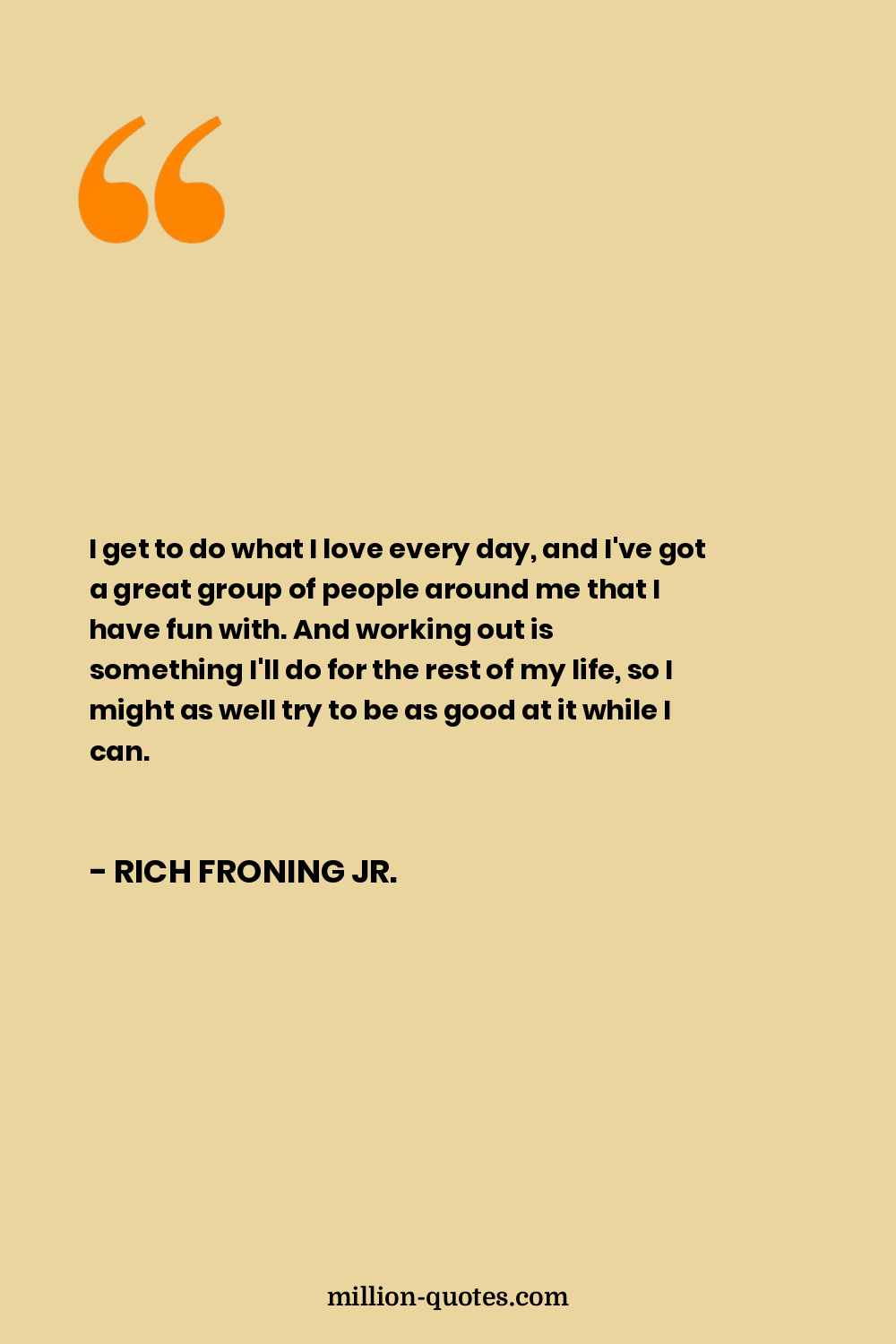 I get to do what I love every day, and I've got a great group of people around me that I have fun with. And working out is something I'll do for the rest of my life, so I might as well try to be as good at it while I can.