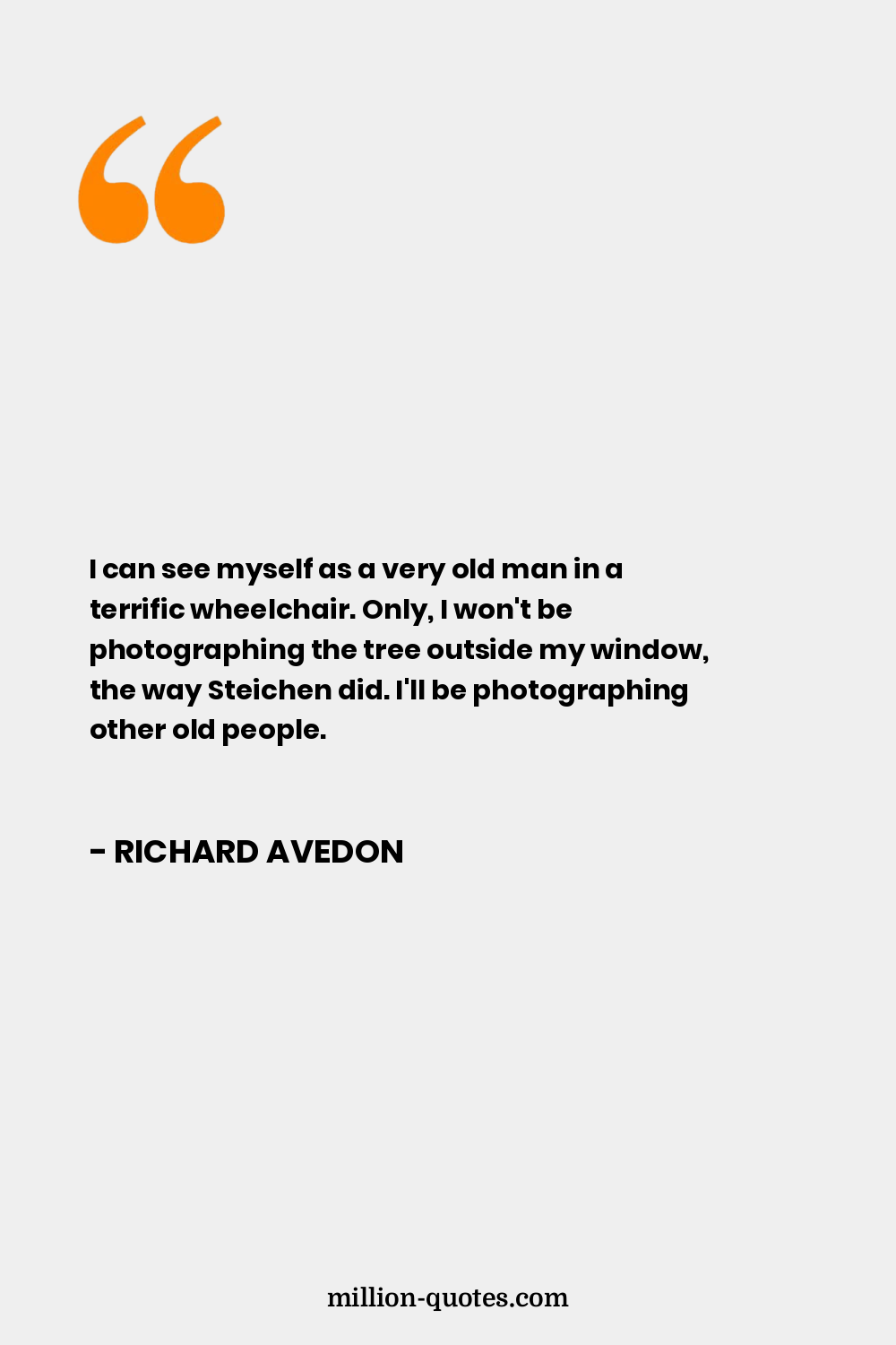 I can see myself as a very old man in a terrific wheelchair. Only, I won't be photographing the tree outside my window, the way Steichen did. I'll be photographing other old people.