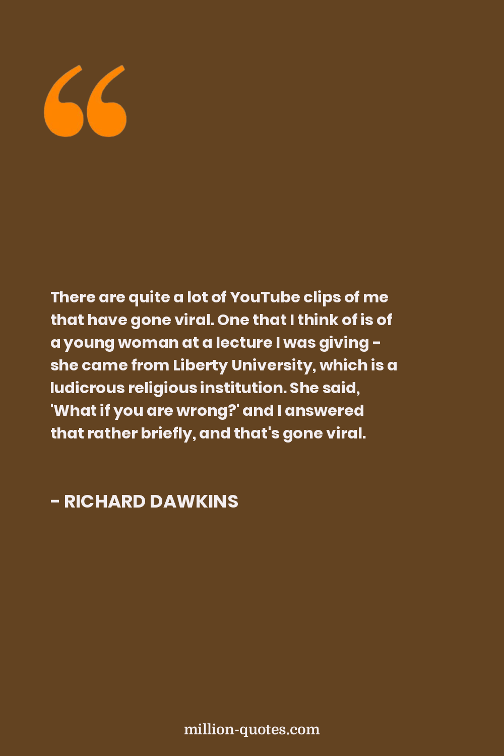 There are quite a lot of YouTube clips of me that have gone viral. One that I think of is of a young woman at a lecture I was giving - she came from Liberty University, which is a ludicrous religious institution. She said, 'What if you are wrong?' and I answered that rather briefly, and that's gone viral.