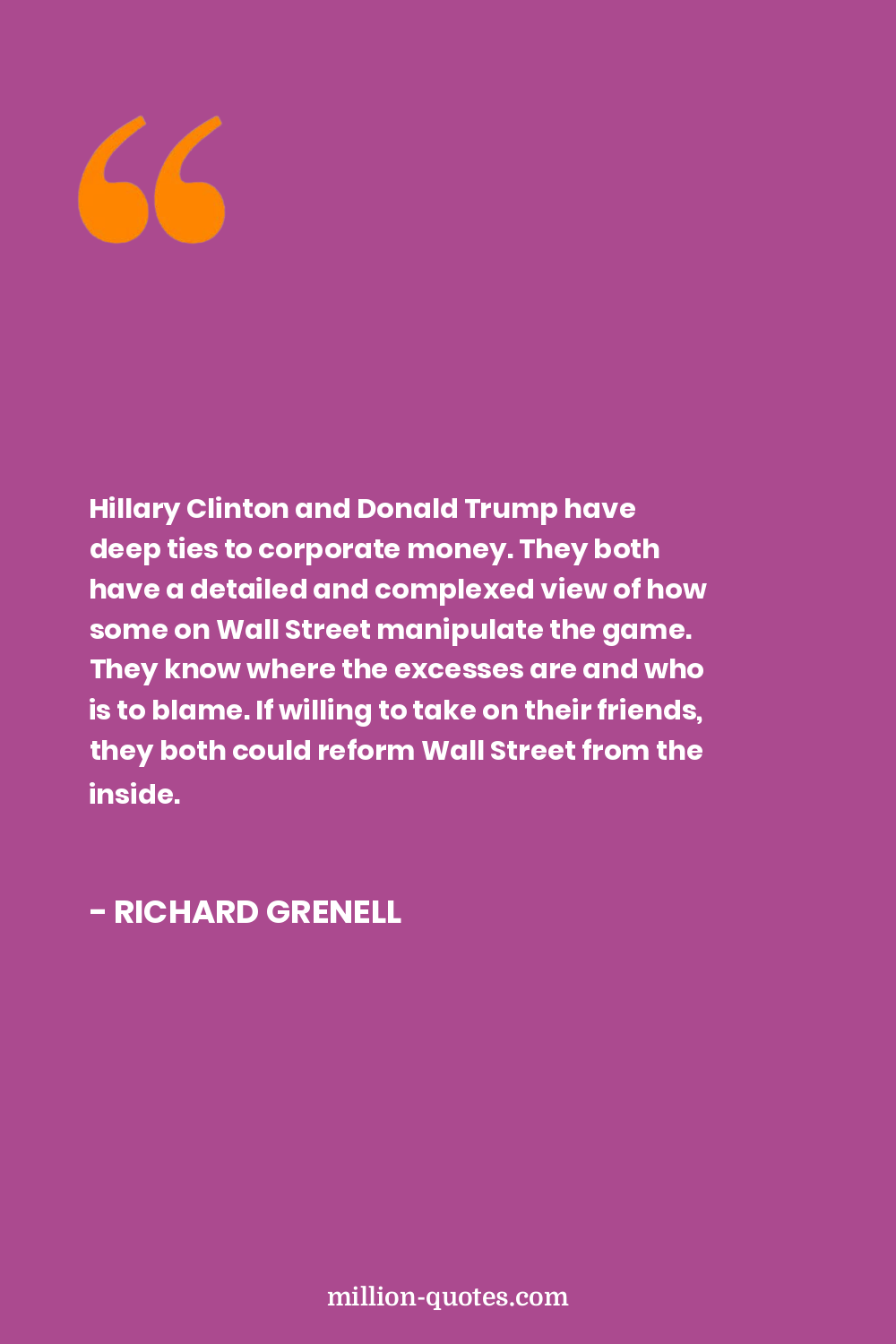 Hillary Clinton and Donald Trump have deep ties to corporate money. They both have a detailed and complexed view of how some on Wall Street manipulate the game. They know where the excesses are and who is to blame. If willing to take on their friends, they both could reform Wall Street from the inside.