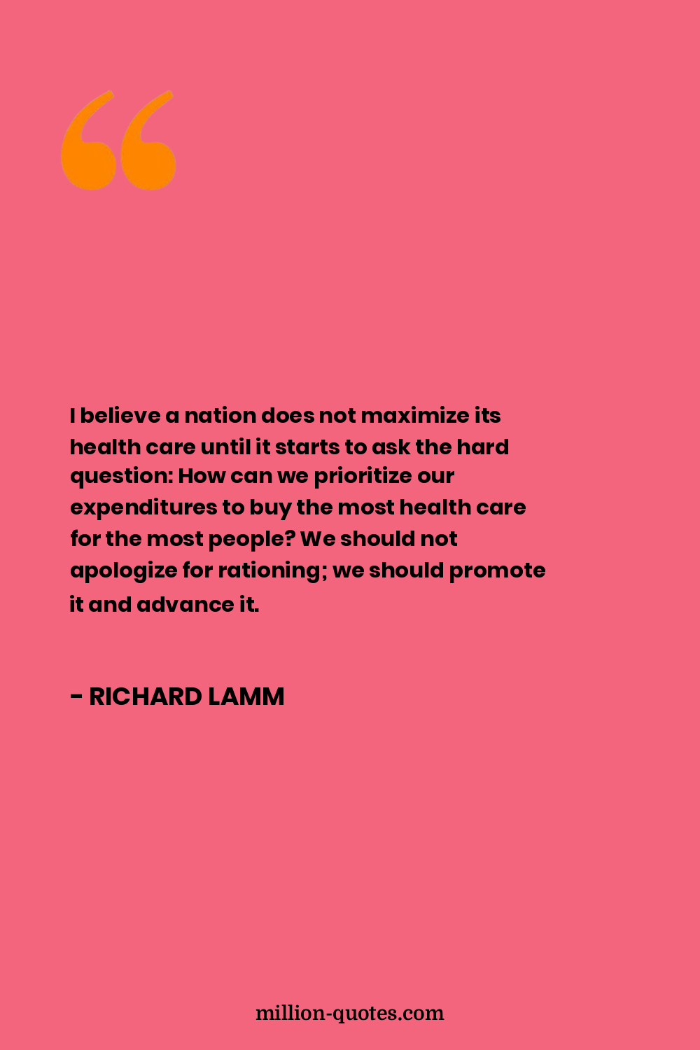 I believe a nation does not maximize its health care until it starts to ask the hard question: How can we prioritize our expenditures to buy the most health care for the most people? We should not apologize for rationing; we should promote it and advance it.