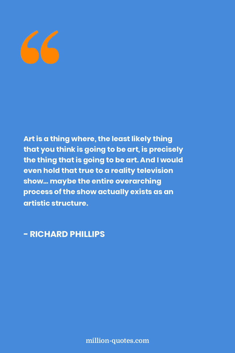 Art is a thing where, the least likely thing that you think is going to be art, is precisely the thing that is going to be art. And I would even hold that true to a reality television show... maybe the entire overarching process of the show actually exists as an artistic structure.