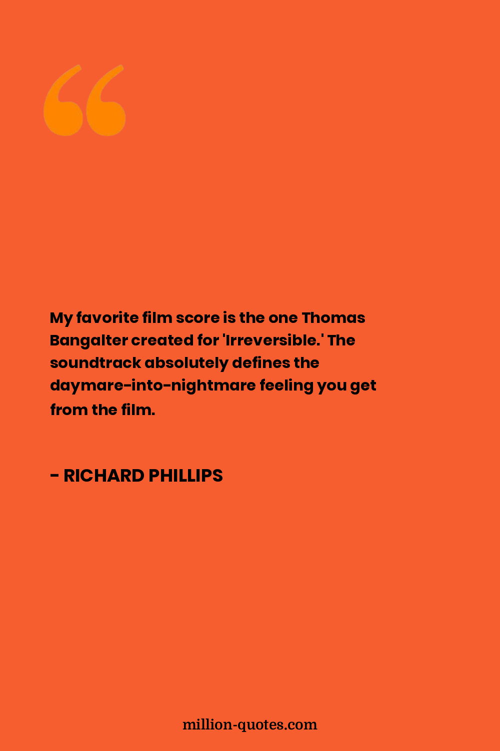 My favorite film score is the one Thomas Bangalter created for 'Irreversible.' The soundtrack absolutely defines the daymare-into-nightmare feeling you get from the film.