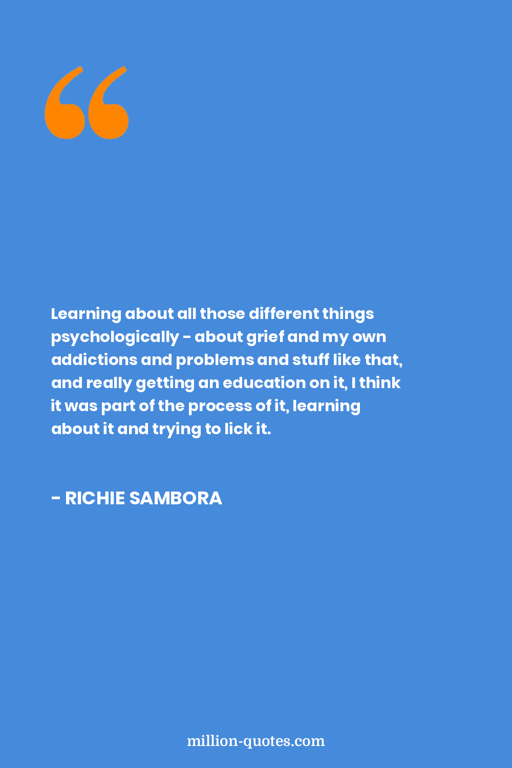 Learning about all those different things psychologically - about grief and my own addictions and problems and stuff like that, and really getting an education on it, I think it was part of the process of it, learning about it and trying to lick it.