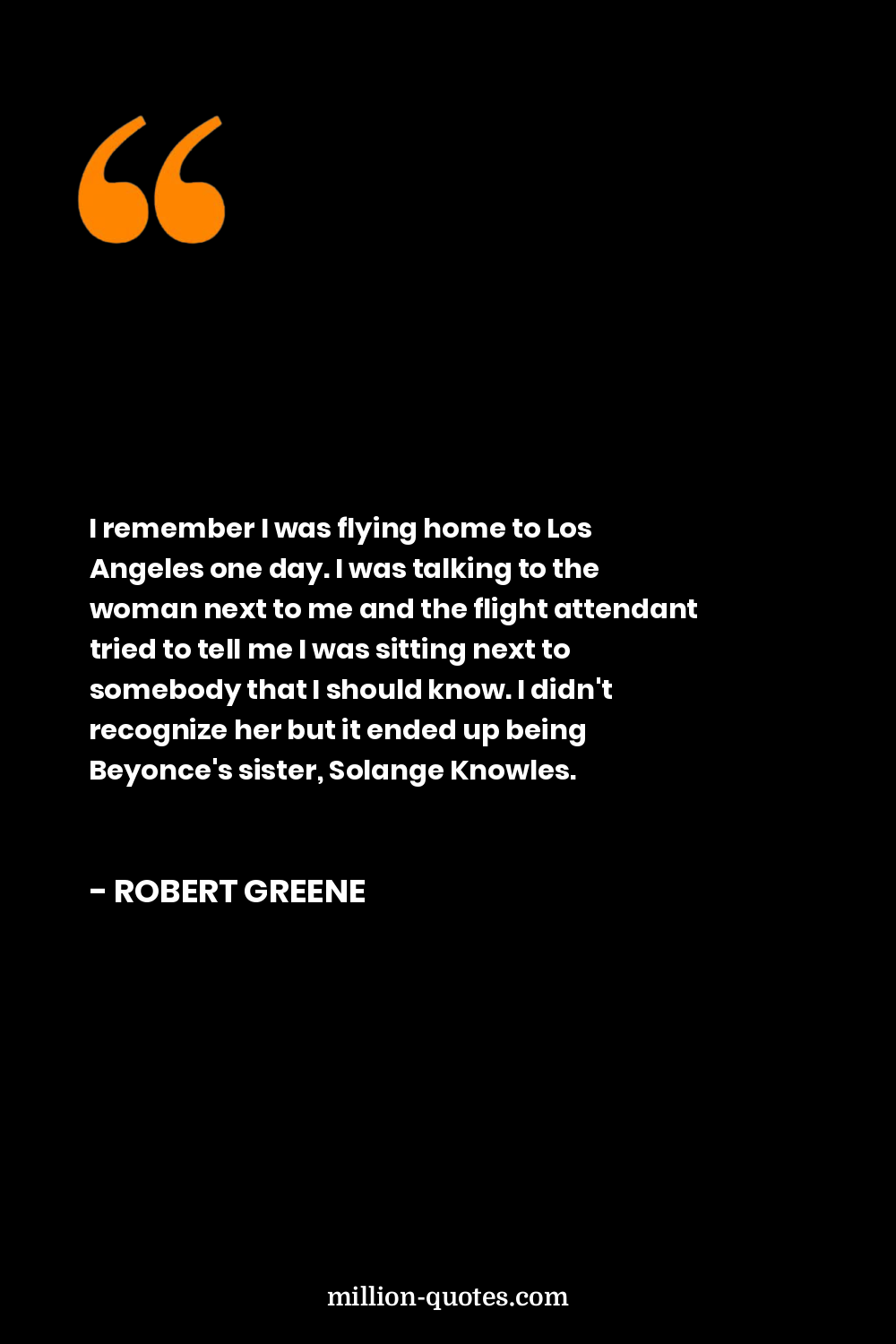 I remember I was flying home to Los Angeles one day. I was talking to the woman next to me and the flight attendant tried to tell me I was sitting next to somebody that I should know. I didn't recognize her but it ended up being Beyonce's sister, Solange Knowles.