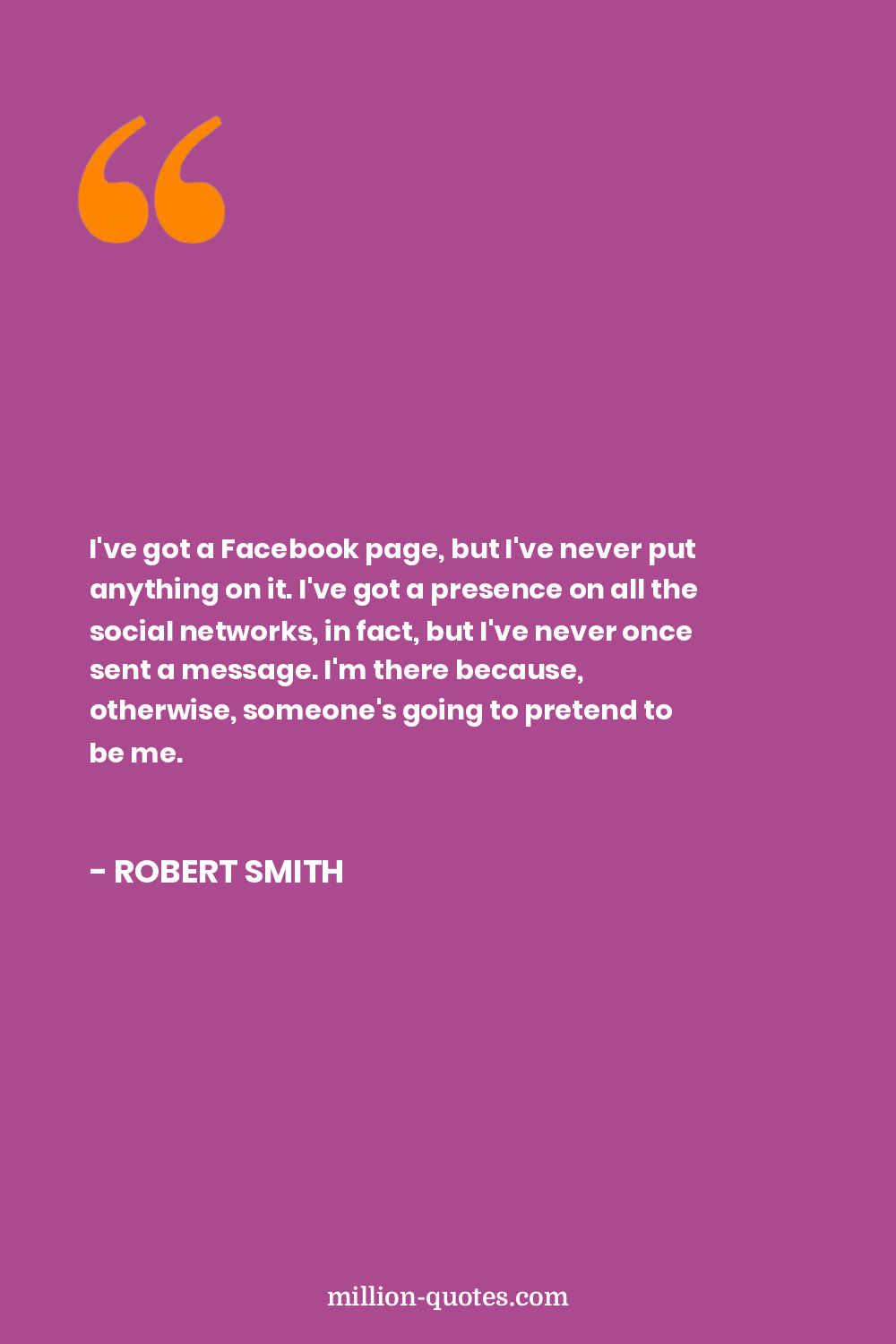 I've got a Facebook page, but I've never put anything on it. I've got a presence on all the social networks, in fact, but I've never once sent a message. I'm there because, otherwise, someone's going to pretend to be me.