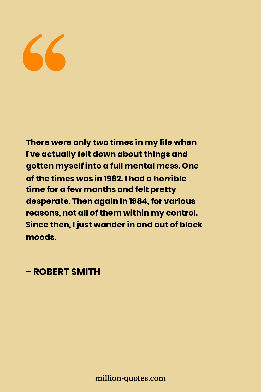 There were only two times in my life when I've actually felt down about things and gotten myself into a full mental mess. One of the times was in 1982. I had a horrible time for a few months and felt pretty desperate. Then again in 1984, for various reasons, not all of them within my control. Since then, I just wander in and out of black moods.