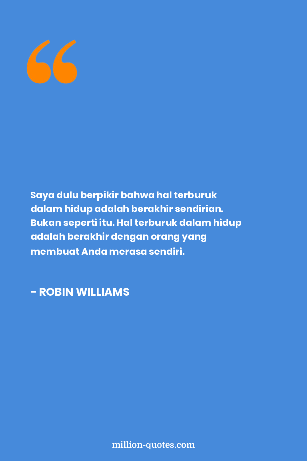 Saya dulu berpikir bahwa hal terburuk dalam hidup adalah berakhir sendirian. Bukan seperti itu. Hal terburuk dalam hidup adalah berakhir dengan orang yang membuat Anda merasa sendiri.