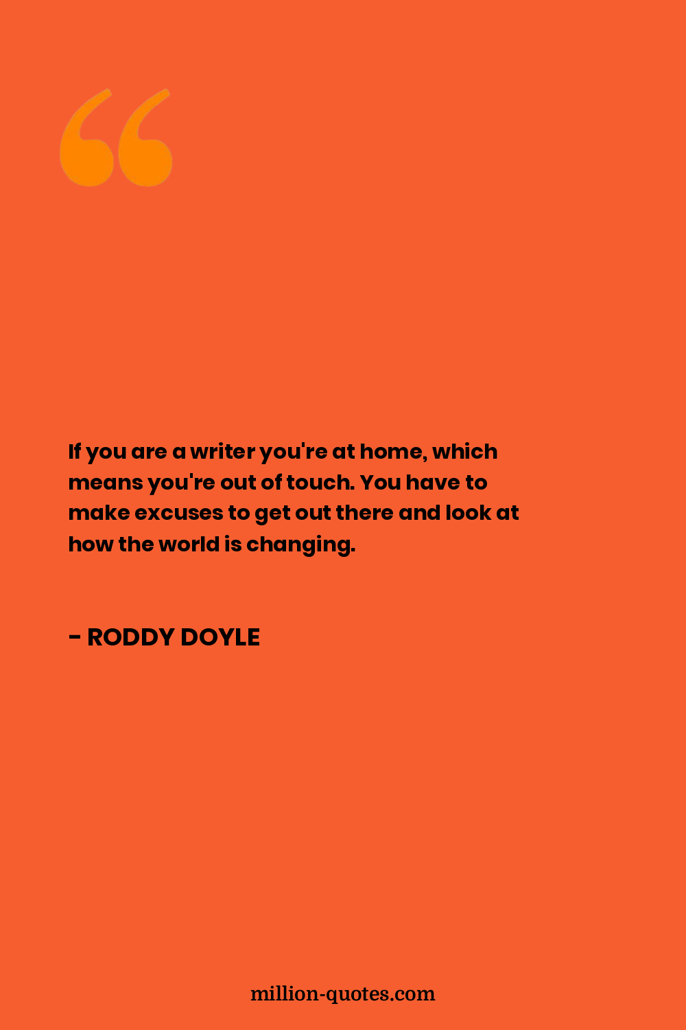 If you are a writer you're at home, which means you're out of touch. You have to make excuses to get out there and look at how the world is changing.