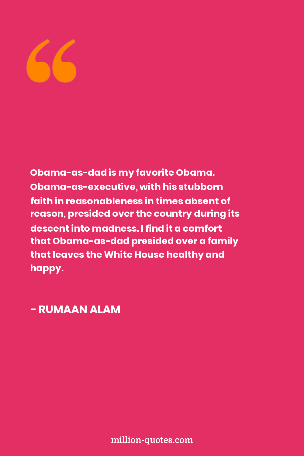 Obama-as-dad is my favorite Obama. Obama-as-executive, with his stubborn faith in reasonableness in times absent of reason, presided over the country during its descent into madness. I find it a comfort that Obama-as-dad presided over a family that leaves the White House healthy and happy.