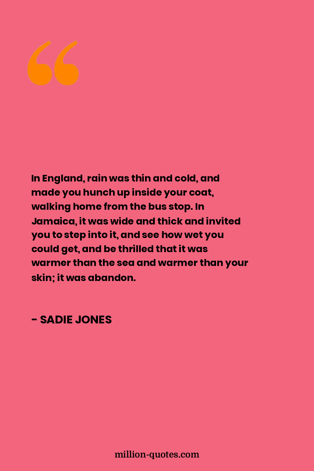 My father is from Jamaica, and as a child I spent many holidays there. I remember the weight and drenching wetness of that hot rain, as I experienced it in my childhood, not only for itself, but for what it represented for me.