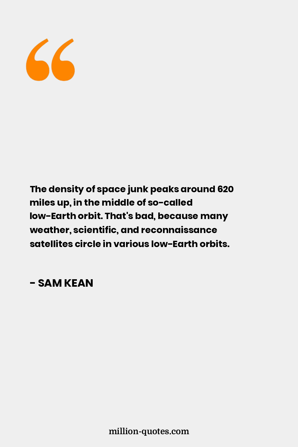 The density of space junk peaks around 620 miles up, in the middle of so-called low-Earth orbit. That's bad, because many weather, scientific, and reconnaissance satellites circle in various low-Earth orbits.
