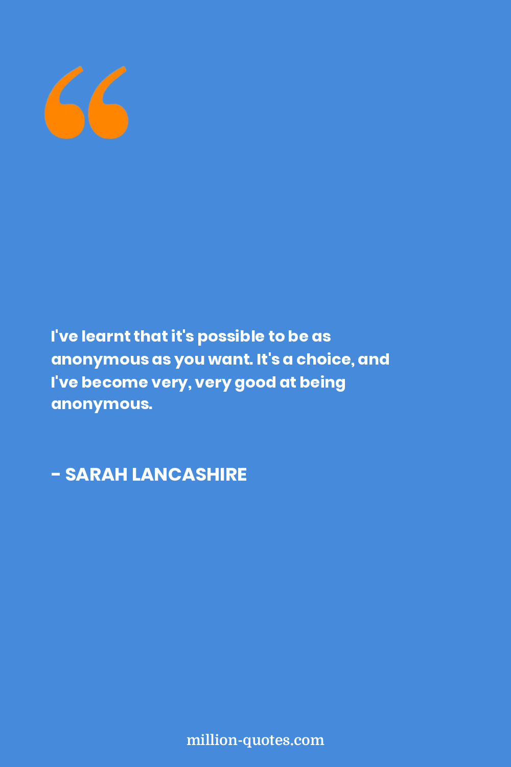 I've learnt that it's possible to be as anonymous as you want. It's a choice, and I've become very, very good at being anonymous.