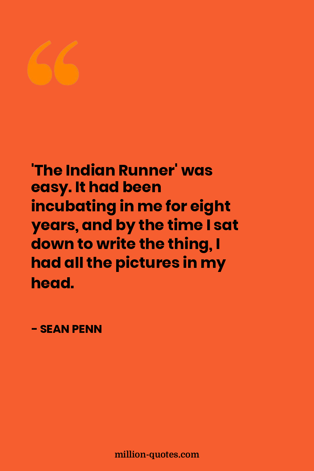 'The Indian Runner' was easy. It had been incubating in me for eight years, and by the time I sat down to write the thing, I had all the pictures in my head.