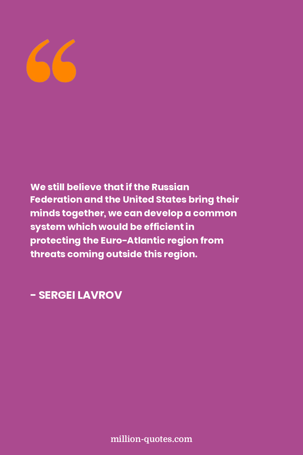 We still believe that if the Russian Federation and the United States bring their minds together, we can develop a common system which would be efficient in protecting the Euro-Atlantic region from threats coming outside this region.