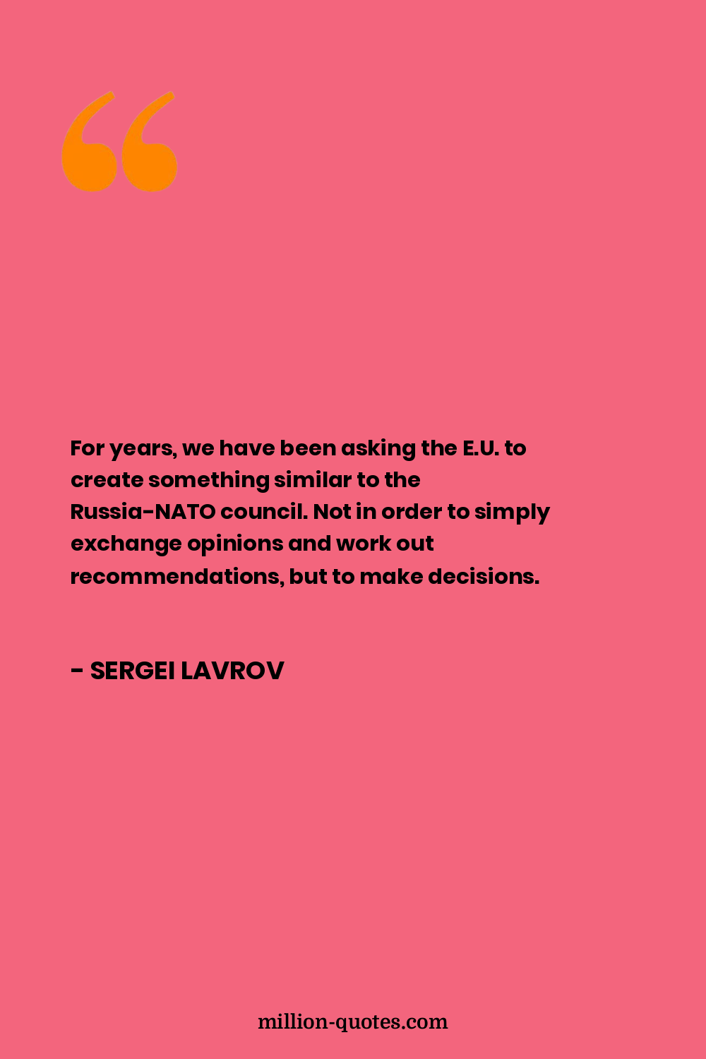 For years, we have been asking the E.U. to create something similar to the Russia-NATO council. Not in order to simply exchange opinions and work out recommendations, but to make decisions.