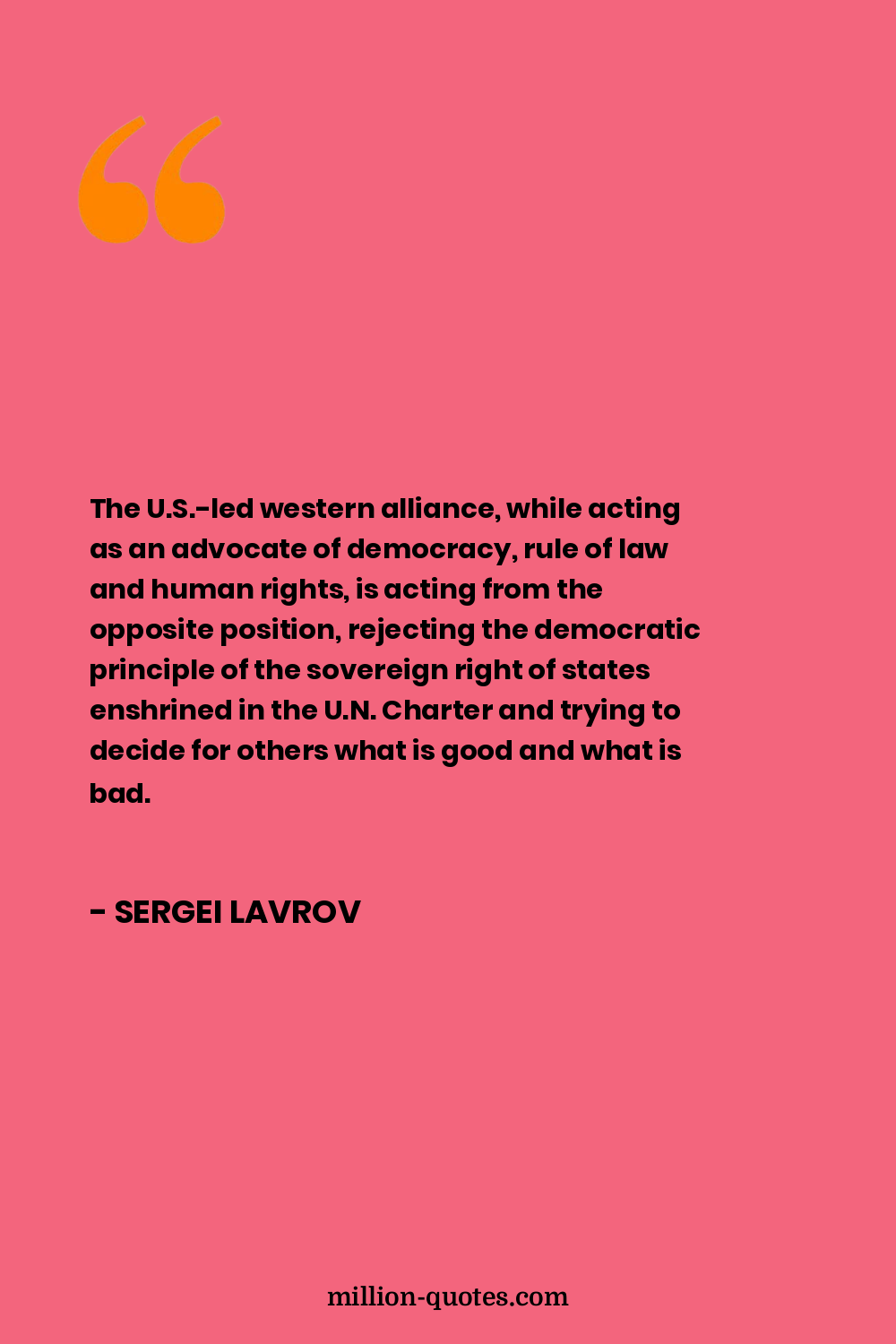 The U.S.-led western alliance, while acting as an advocate of democracy, rule of law and human rights, is acting from the opposite position, rejecting the democratic principle of the sovereign right of states enshrined in the U.N. Charter and trying to decide for others what is good and what is bad.