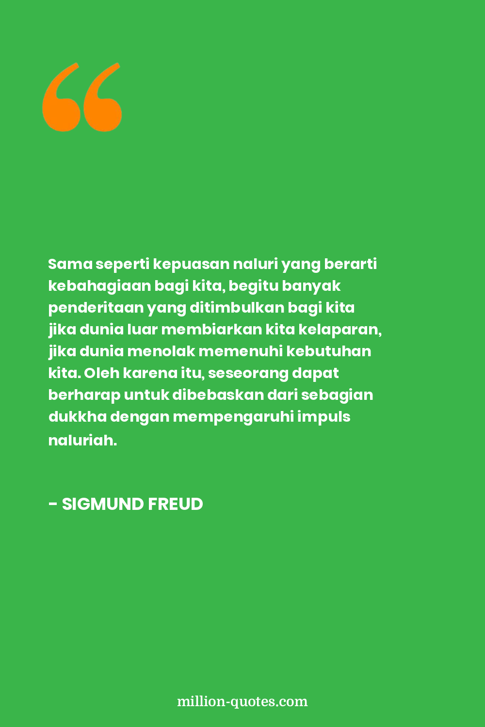 Sama seperti kepuasan naluri yang berarti kebahagiaan bagi kita, begitu banyak penderitaan yang ditimbulkan bagi kita jika dunia luar membiarkan kita kelaparan, jika dunia menolak memenuhi kebutuhan kita. Oleh karena itu, seseorang dapat berharap untuk dibebaskan dari sebagian dukkha dengan mempengaruhi impuls naluriah.