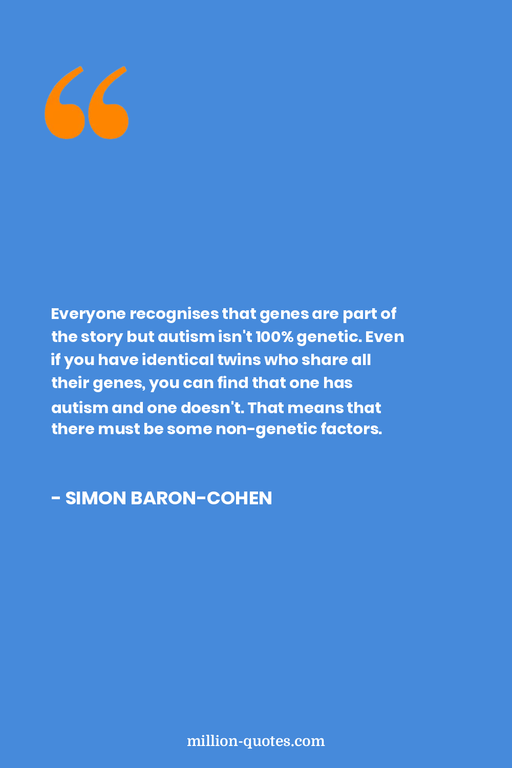 Everyone recognises that genes are part of the story but autism isn't 100% genetic. Even if you have identical twins who share all their genes, you can find that one has autism and one doesn't. That means that there must be some non-genetic factors.
