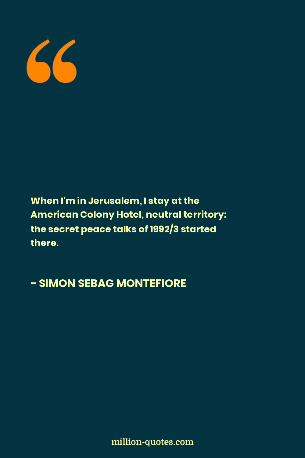 When I'm in Jerusalem, I stay at the American Colony Hotel, neutral territory: the secret peace talks of 1992/3 started there.