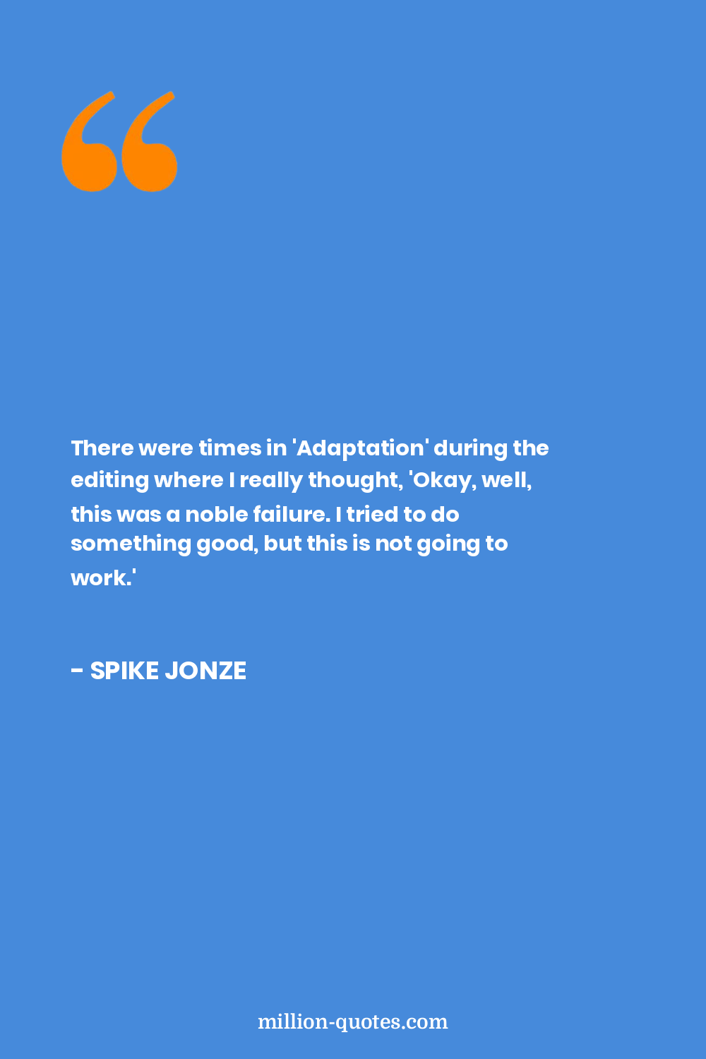 There were times in 'Adaptation' during the editing where I really thought, 'Okay, well, this was a noble failure. I tried to do something good, but this is not going to work.'