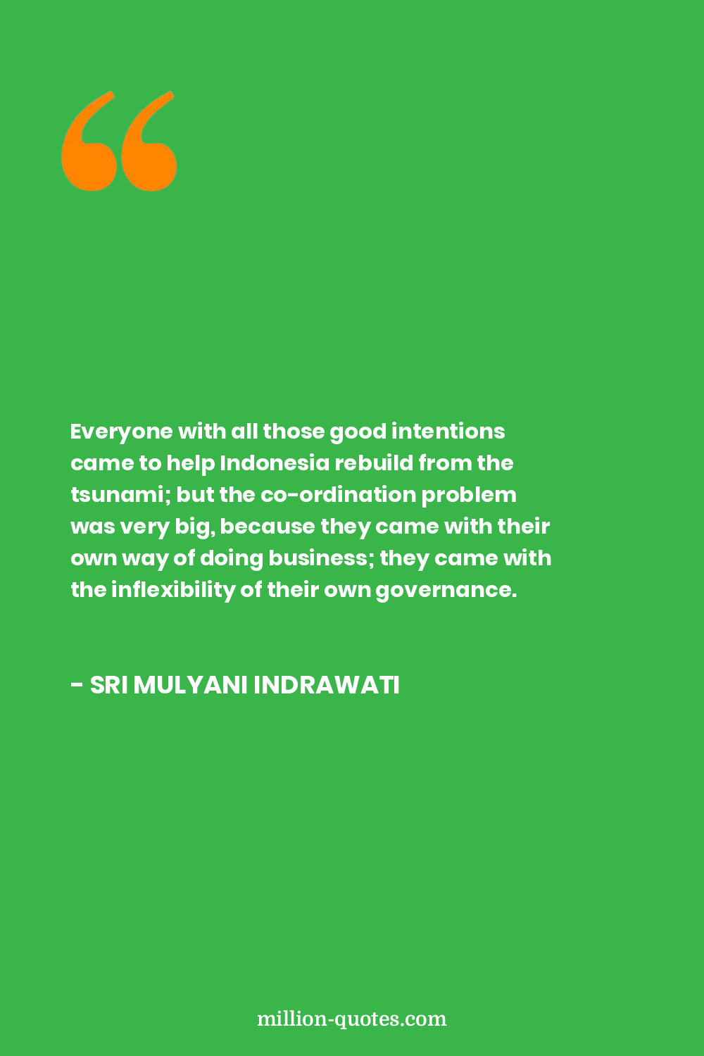 Everyone with all those good intentions came to help Indonesia rebuild from the tsunami; but the co-ordination problem was very big, because they came with their own way of doing business; they came with the inflexibility of their own governance.