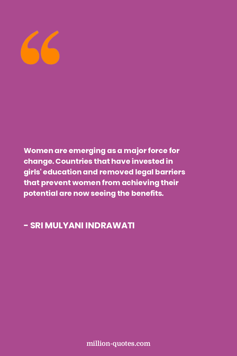 Women are emerging as a major force for change. Countries that have invested in girls' education and removed legal barriers that prevent women from achieving their potential are now seeing the benefits.