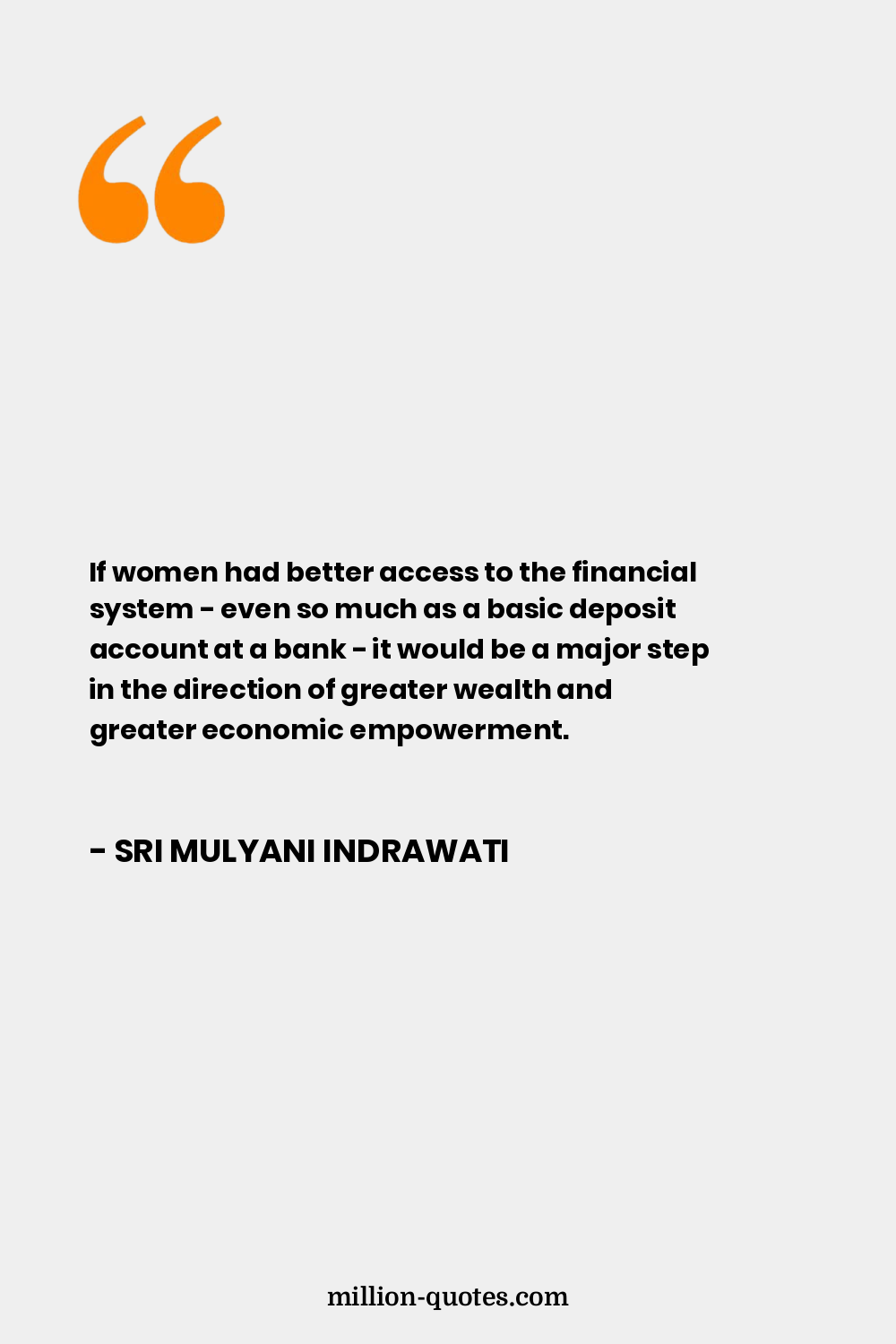 If women had better access to the financial system - even so much as a basic deposit account at a bank - it would be a major step in the direction of greater wealth and greater economic empowerment.